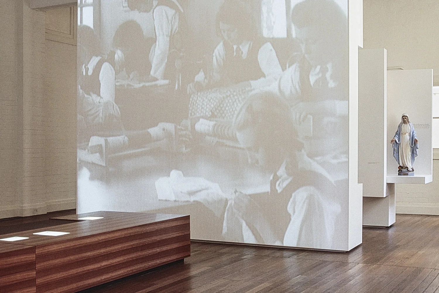 The brief asked for an interpretation of the life and work of Mary MacKillop using the original heritage classroom where she once taught as a vessel. The interpretive approach used the sense of place as a starting point to develop an exhibition structure that would respect the heritage fabric of the building and create a place for memory, reflection and contemplation. Richly layered with symbolism and metaphor, the displays are arranged around two seemingly monolithic structures that gradually reveal objects, archival material, multimedia components and graphics through carefully crafted openings.