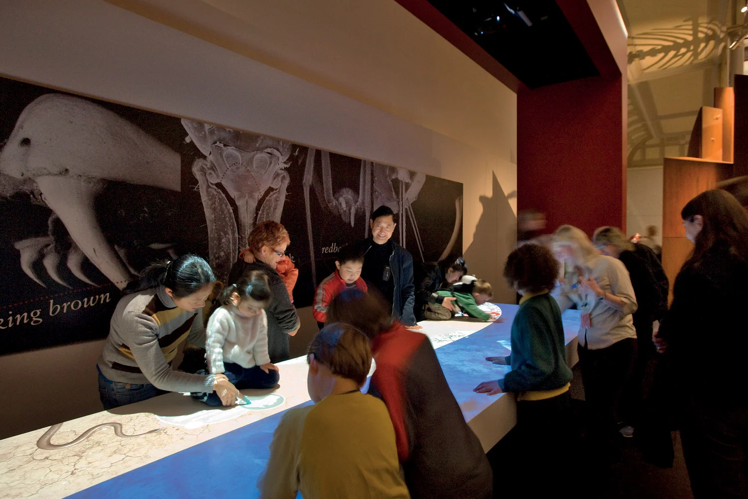 The exhibition showcases some of the museum’s extensive collection of natural science specimens through a contemporary mix of interpretive design strategies, including interior architectural forms, graphics, interactive multimedia experiences, dramatic lighting, soundscapes and live animal displays.